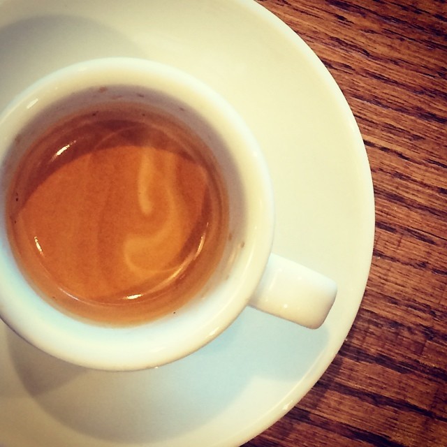 Their new outlet at the brand spanking new T2 at LHR has a bit of a hipster feel to it, complete with upstairs roasting facility (whether it is for show or actual use was not clear). A straight shot is good value at £1.50 to go – £1.60 to sit… and I’d say it is better than what you get at the average tired Nero spot. (at London Heathrow Terminal 2)